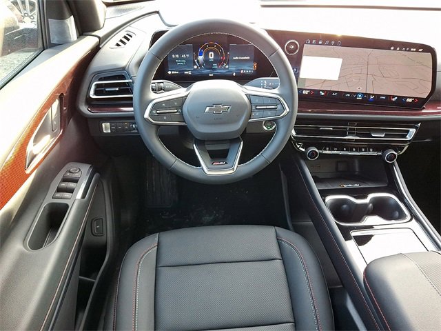 AWD, 3rd row seats: split-bench, 4-Way Manual Front Passenger Seat Adjuster, 4-Wheel Disc Brakes, 6 Speakers, 6-Speaker Audio System Feature, 8-Way Power Driver Seat Adjuster, ABS brakes, Air Conditioning, Alloy wheels, AM/FM radio: SiriusXM with 360L, Apple CarPlay/Android Auto, Auto High-beam Headlights, Automatic temperature control, Brake assist, Child-Seat-Sensing Airbag, Compass, Delay-off headlights, Driver door bin, Driver vanity mirror, Dual front impact airbags, Dual front side impact airbags, Electronic Stability Control, Emergency communication system: OnStar, Evotex Seat Trim, Four wheel independent suspension, Front anti-roll bar, Front Bucket Seats, Front Center Armrest, Front dual zone A/C, Front reading lights, Fully automatic headlights, Heated door mirrors, Heated Driver and Front Passenger Seats, Heated front seats, Heated steering wheel, Illuminated entry, Low tire pressure warning, Navigation System, Occupant sensing airbag, Outside temperature display, Overhead airbag, Overhead console, Panic alarm, Passenger door bin, Passenger vanity mirror, Power door mirrors, Power driver seat, Power Liftgate, Power steering, Power windows, Radio data system, Radio: : Audio System w/17.7 Diagonal Display, Rear air conditioning, Rear anti-roll bar, Rear reading lights, Rear window defroster, Rear window wiper, Remote keyless entry, Security system, SiriusXM with 360L Trial Subscription, Speed control, Speed-sensing steering, Spoiler, Steering wheel mounted audio controls, Tachometer, Telescoping steering wheel, Tilt steering wheel, Traction control, Trip computer, Turn signal indicator mirrors, Variably intermittent wipers, Voltmeter, Wheels: : 18 High Gloss Black Painted Aluminum, AWD.