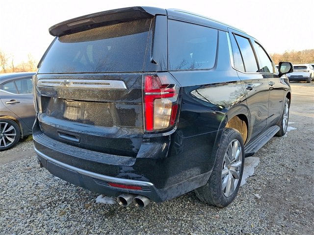 Recent Arrival! 2021 Chevrolet Tahoe High Country Black 4D Sport Utility 4WD Chevrolet Certified Pre-Owned Certified, 4WD, Jet Black/Mocha Leather, 15 Diagonal Multi-Color Head-Up Display, 1st & 2nd Row Color-Keyed Carpeted Floor Mats, 2 USB Data Ports, 2-Speed Active Electronic AutoTrac Transfer Case, 3rd Row 60/40 Power-Folding Split-Bench Seat, Apple CarPlay/Android Auto, Automatic Heated Steering Wheel, Bose 10-Speaker Centerpoint Surround Audio Sys Ft, Bright Front & Rear Door Sill Plates, Chrome Door Handles w/Body-Color Strip, Color-Keyed Carpeting Floor Covering, Driver & Front Outboard Passenger Airbags, Dual Exhaust System, Emergency communication system: OnStar and Chevrolet connected services capable, Enhanced Driver Information Center, Floor Console w/Storage Area, Front & Rear Park Assist, Hands-Free Rear Power Programmable Liftgate, HD Radio, HD Surround Vision, Heated 2nd Row Outboard Seats, Hill Descent Control, Infotainment Display, Inside Rearview Auto-Dimming Rear Camera Mirror, Lane Change Alert w/Side Blind Zone Alert, Lane Keep Assist w/Lane Departure Warning, Leather-Wrapped Steering Wheel, LED Daytime Running Lamps, Memory Settings, Navigation System, Outside Heated Power-Adjustable Mirrors, Power Release 2nd Row Bucket Seats, Power Tilt & Telescopic Steering Column, Preferred Equipment Group 3LZ, Premium audio system: Chevrolet Infotainment 3, Rear Camera Mirror Washer, Rear Cross Traffic Alert, Rear Pedestrian Alert, Remote Start, Safety Alert Seat, Set of 4 Wheel Locks (LPO), SiriusXM NavTraffic, SiriusXM Radio w/360L, Universal Home Remote, Wheels: 22 x 9 Sterling Silver Premium Painted, 10 Speakers, 12-Way Power Driver & Passenger Seat Adjusters, 3.23 Rear Axle Ratio, 3rd row seats: split-bench, 4-Wheel Disc Brakes, ABS brakes, Adaptive Cruise Control, Adaptive suspension, Air Conditioning, All-Weather Cargo Mat (LPO), Alloy wheels, AM/FM radio: SiriusXM with 360L, Auto High-beam Headlights, Auto-dimming door mirrors, Auto-dimming Rear-View mirror, Auto-leveling suspension, Automatic temperature control, Black Name Plates (LPO), Brake assist, Bumpers: body-color, Compass, Delay-off headlights, Driver door bin, Driver vanity mirror, Dual front impact airbags, Dual front side impact airbags, Dual-Pane Power Panoramic Sunroof, Electronic Stability Control, Enhanced Automatic Emergency Braking, Four wheel independent suspension, Front & Rear Black Bowtie Emblems (LPO), Front anti-roll bar, Front Bucket Seats, Front Center Armrest, Front dual zone A/C, Front High-Back Reclining Bucket Seats, Front reading lights, Fully automatic headlights, Garage door transmitter, Heads-Up Display, Heated & Ventilated Driver & Front Passenger Seats, Heated door mirrors, Heated Driver & Front Passenger Seats, Heated front seats, Heated rear seats, Heated steering wheel, Illuminated entry, Leather steering wheel, Low tire pressure warning, Magnetic Ride Control Suspension, Memory seat, Occupant sensing airbag, Outside temperature display, Overhead airbag, Overhead console, Panic alarm, Passenger door bin, Passenger vanity mirror, Perforated Leather Seat Trim, Power door mirrors, Power driver seat, Power Liftgate, Power passenger seat, Power steering, Power windows, Radio: Chevrolet Infotainment 3 Premium System, Rain sensing wipers, Rear air conditioning, Rear anti-roll bar, Rear reading lights, Rear Seat Media System, Rear window defroster, Rear window wiper, Remote keyless entry, Roof rack: rails only, Security system, Speed control, Speed-sensing steering, Split folding rear seat, Spoiler, Steering wheel memory, Steering wheel mounted audio controls, Tachometer, Telescoping steering wheel, Tilt steering wheel, Tr