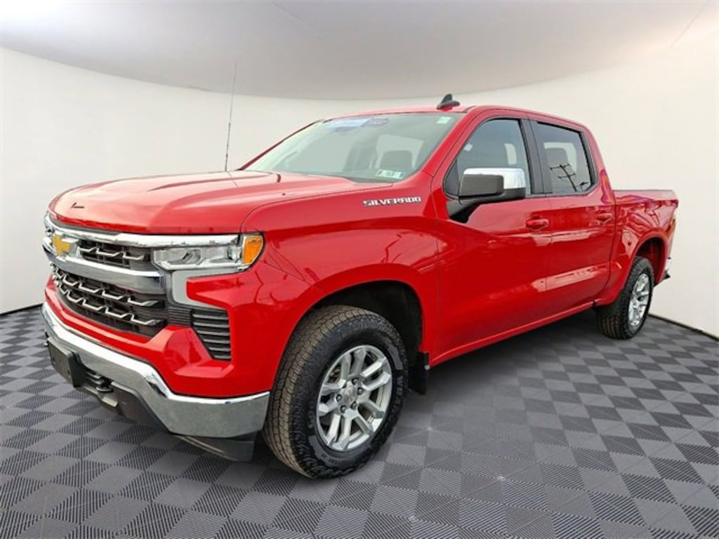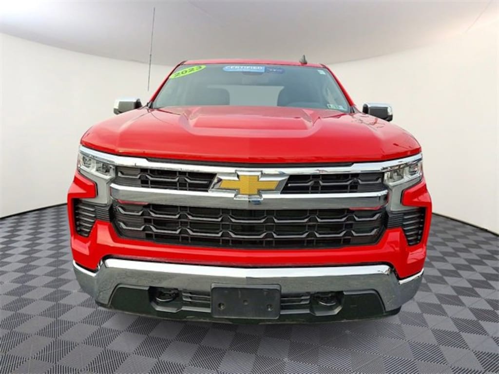 2023 Chevrolet Silverado 1500 LT Red Hot 4D Crew Cab 4WD Chevrolet Certified Pre-Owned Certified, 8-Speed Automatic, 4WD, Black Cloth, 10-Way Power Driver Seat w/Lumbar, 12.3 Multicolor Reconfigurable Digital Display, 120-Volt Bed Mounted Power Outlet, 120-Volt Instrument Panel Power Outlet, 6-Speaker Audio System, All-Star Edition, AM/FM radio: SiriusXM with 360L, Apple CarPlay/Android Auto, Bluetooth® For Phone, Chevrolet Connected Access Capable, Convenience Package, Dual Rear USB Ports (Charge Only), Dual-Zone Automatic Climate Control, Heated Driver & Front Outboard Passenger Seats, Heated Steering Wheel, Hitch Guidance, Keyless Open & Start, OnStar & Chevrolet Connected Services Capable, Trailering Package, Wheels: 18 x 8.5 Bright Silver Painted Aluminum, Wi-Fi Hot Spot Capable, Wrapped Steering Wheel, 3.42 Rear Axle Ratio, 4-Wheel Disc Brakes, 40/20/40 Front Split-Bench Seat, 6 Speakers, ABS brakes, Air Conditioning, Alloy wheels, Auto High-beam Headlights, Auto-Locking Rear Differential, Automatic Emergency Braking, Automatic temperature control, Brake assist, Bumpers: chrome, Chrome Mirror Caps, Cloth Seat Trim, Color-Keyed Carpeting Floor Covering, Compass, Deep-Tinted Glass, Delay-off headlights, Driver door bin, Driver vanity mirror, Dual front impact airbags, Dual front side impact airbags, Electric Rear-Window Defogger, Electrical Steering Column Lock, Electronic Cruise Control, Electronic Stability Control, Following Distance Indicator, Forward Collision Alert, Front anti-roll bar, Front Center Armrest w/Storage, Front dual zone A/C, Front Frame-Mounted Black Recovery Hooks, Front License Plate Kit, Front Pedestrian Braking, Front reading lights, Front wheel independent suspension, Fully automatic headlights, HD Rear Vision Camera, Heated door mirrors, Heated front seats, Heated steering wheel, Illuminated entry, IntelliBeam Automatic High Beam On/Off, Lane Keep Assist w/Lane Departure Warning, LED Cargo Area Lighting, Low tire pressure warning, Not Equipped w/Steering Column Lock, Occupant sensing airbag, Outside temperature display, Overhead airbag, Overhead console, Panic alarm, Passenger door bin, Passenger vanity mirror, Power door mirrors, Power driver seat, Power Front Windows w/Driver Express Up/Down, Power Front Windows w/Passenger Express Down, Power Rear Windows w/Express Down, Power steering, Power windows, Premium audio system: Chevrolet Infotainment 3 Premium, Radio data system, Radio: Chevrolet Infotainment 3 Premium System, Rear 60/40 Folding Bench Seat (Folds Up), Rear reading lights, Rear step bumper, Rear window defroster, Remote keyless entry, Remote Vehicle Starter System, Security system, SiriusXM w/360L, Speed control, Speed-sensing steering, Split folding rear seat, Standard Suspension Package, Steering Wheel Audio Controls, Steering wheel mounted audio controls, Tachometer, Telescoping steering wheel, Theft Deterrent System (Unauthorized Entry), Tilt steering wheel, Traction control, Trip computer, Variably intermittent wipers, Voltmeter, Wireless Phone Projection, 8-Speed Automatic, 4WD, Black Cloth, 10-Way Power Driver Seat w/Lumbar, 12.3 Multicolor Reconfigurable Digital Display, 120-Volt Bed Mounted Power Outlet, 120-Volt Instrument Panel Power Outlet, 6-Speaker Audio System, All-Star Edition, AM/FM radio: SiriusXM with 360L, Apple CarPlay/Android Auto, Bluetooth® For Phone, Chevrolet Connected Access Capable, Convenience Package, Dual Rear USB Ports (Charge Only), Dual-Zone Automatic Climate Control, Heated Driver & Front Outboard Passenger Seats, Heated Steering Wheel, Hitch Guidance, Keyless Open & Start, OnStar & Chevrolet Connected Services Capable, Trailering Package, Wheel