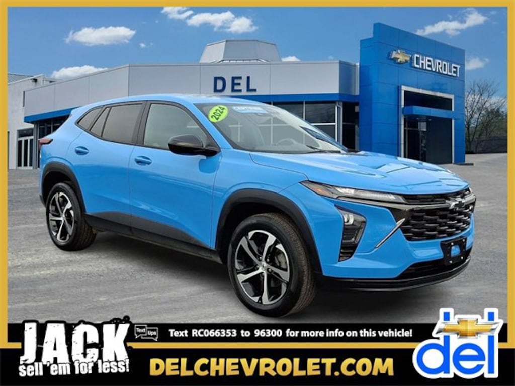 2024 Chevrolet Trax 1RS Fountain Blue 4D Sport Utility FWD Chevrolet Certified Pre-Owned Certified, 4-Speaker Audio System Feature, AM/FM radio: SiriusXM, Driver Confidence Package, Emergency communication system: OnStar and Chevrolet connected services capable, Lane Change Alert w/Side Blind Zone Alert, Power Sliding Glass Sunroof w/Manual Shade, Preferred Equipment Group 1RS, Premium audio system: Chevrolet Infotainment 3, Radio: Chevrolet Infotainment 3 System w/AM/FM, Rear Cross-Traffic Alert, Rear Park Assist, SiriusXM, Sunroof Package, Wheels: 18 Black-Painted Machined Aluminum, 2-Way Adjustable Front Head Restraints, 3.50 Final Drive Axle Ratio, 4 Speakers, 4-Way Manual Front Passenger Seat Adjuster, 4-Wheel Disc Brakes, 6-Way Manual Driver Seat Adjuster, ABS brakes, Air Conditioning, Alloy wheels, Auto High-beam Headlights, Brake assist, Bumpers: body-color, Cloth Seat Trim, Compass, Delay-off headlights, Driver door bin, Driver vanity mirror, Dual front impact airbags, Dual front side impact airbags, Electronic Stability Control, Exterior Parking Camera Rear, Front anti-roll bar, Front Bucket Seats, Front Center Armrest, Front reading lights, Front wheel independent suspension, Fully automatic headlights, Heated door mirrors, Heated Driver & Front Passenger Seats, Heated front seats, Heated steering wheel, Illuminated entry, License Plate Front Mounting Package, Low tire pressure warning, Occupant sensing airbag, Outside temperature display, Overhead airbag, Overhead console, Panic alarm, Passenger door bin, Passenger vanity mirror, Power door mirrors, Power steering, Power windows, Radio data system, Rear Park Assist (DISC), Rear window defroster, Rear window wiper, Remote keyless entry, Security system, Speed control, Split folding rear seat, Spoiler, Sport steering wheel, Steering wheel mounted audio controls, Tachometer, Telescoping steering wheel, Tilt steering wheel, Traction control, Trip computer, Variably intermittent wipers, 4-Speaker Audio System Feature, AM/FM radio: SiriusXM, Driver Confidence Package, Emergency communication system: OnStar and Chevrolet connected services capable, Lane Change Alert w/Side Blind Zone Alert, Power Sliding Glass Sunroof w/Manual Shade, Preferred Equipment Group 1RS, Premium audio system: Chevrolet Infotainment 3, Radio: Chevrolet Infotainment 3 System w/AM/FM, Rear Cross-Traffic Alert, Rear Park Assist, SiriusXM, Sunroof Package, Wheels: 18 Black-Painted Machined Aluminum. 1.2L Ecotec Turbo DOHC DI w/VVT