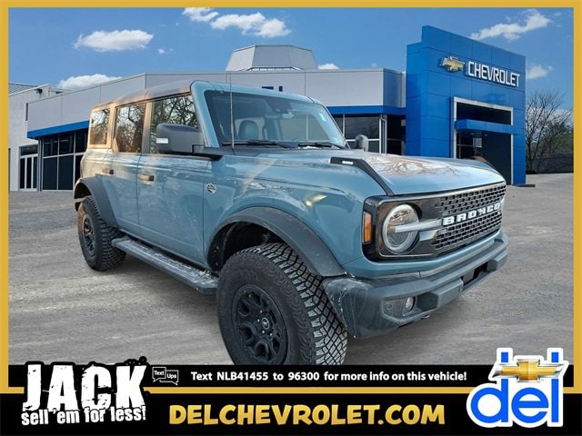 Thanks for shopping Del Chevrolet serving Chester County For Over 40 Years, DEL CHEVY, We Accept All Trades, Cars, Trucks, Motorcycles, Boats, Quads, etc! We Specialize In All Credit Situations! Good, Bad, Even No Credit! Experience The DEL DIFFERENCE!2022 Ford Bronco Wildtrak Area 51 4D Sport Utility 4WD 6 Speakers, AM/FM radio: SiriusXM with 360L, Emergency communication system: 911 Assist, SYNC 4, Wheels: 17 Black High Gloss-Painted Aluminum, 4-Wheel Disc Brakes, ABS brakes, Air Conditioning, AM/FM Stereo, Auto High-beam Headlights, Brake assist, Carbonized Gray Molded-In-Color Hard Top, Compass, Delay-off headlights, Driver door bin, Driver vanity mirror, Dual front impact airbags, Dual front side impact airbags, Electronic Stability Control, Exterior Parking Camera Rear, Front anti-roll bar, Front Bucket Seats, Front Center Armrest, Front reading lights, Front Row Top Panels Storage Bag, Front wheel independent suspension, Fully automatic headlights, Heated door mirrors, Illuminated entry, Integrated roll-over protection, Low tire pressure warning, Occupant sensing airbag, Outside temperature display, Overhead airbag, Overhead console, Panic alarm, Passenger door bin, Passenger vanity mirror, Power door mirrors, Power steering, Power windows, Radio data system, Rear-Window Defroster & Washer, Remote keyless entry, Security system, SiriusXM Radio w/360L, Speed control, Split folding rear seat, Steering wheel mounted audio controls, Tachometer, Telescoping steering wheel, Tilt steering wheel, Traction control, Trip computer, Variably intermittent wipers, 6 Speakers, AM/FM radio: SiriusXM with 360L, Emergency communication system: 911 Assist, SYNC 4, Wheels: 17 Black High Gloss-Painted Aluminum. 2.7L EcoBoost V617/17 City/Highway MPGJack of All Trades and Master of Getting deals done! We work with a variety of banks and credit unions to get you the finance rates that work best with your budget. Even if you already have financing, in most cases we can match or beat the rate, plus you get the added convenience of one stop shopping with us here at Del Chevrolet!Awards:* NACTOY 2022 North American Utility of the Year