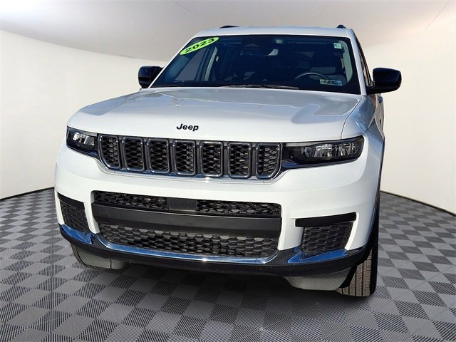 2023 Jeep Grand Cherokee L Laredo Bright White Clearcoat 4D Sport Utility 4WD 6 Speakers, Emergency communication system, Front dual zone A/C, Quick Order Package 23A Laredo, Radio: Uconnect 5 w/8.4 Display, Wheels: 18 x 8.0 Fully Painted Aluminum, 3.45 Rear Axle Ratio, 3rd row seats: split-bench, 4-Wheel Disc Brakes, ABS brakes, Air Conditioning, Alloy wheels, Anti-whiplash front head restraints, Automatic temperature control, Brake assist, Bumpers: body-color, Cloth Seats, Compass, Delay-off headlights, Driver door bin, Driver vanity mirror, Dual front impact airbags, Dual front side impact airbags, Electronic Stability Control, Four wheel independent suspension, Front anti-roll bar, Front Bucket Seats, Front Center Armrest w/Storage, Front License Plate Bracket, Front reading lights, Fully automatic headlights, Heated door mirrors, Illuminated entry, Knee airbag, Low tire pressure warning, Manual Fold Seatbacks, Molded In Color Black/Gloss Black Roof Rails, Normal Duty Suspension, Occupant sensing airbag, Outside temperature display, Overhead airbag, Overhead console, Panic alarm, ParkView Rear Back-Up Camera, Passenger door bin, Passenger vanity mirror, Power door mirrors, Power driver seat, Power steering, Power windows, Radio data system, Rear air conditioning, Rear anti-roll bar, Rear reading lights, Rear window defroster, Rear window wiper, Reclining 3rd row seat, Remote keyless entry, Security system, Speed control, Speed-Sensitive Wipers, Split folding rear seat, Spoiler, Steering wheel mounted audio controls, Tachometer, Telescoping steering wheel, Tilt steering wheel, Traction control, Trip computer, Variably intermittent wipers, Voltmeter, 6 Speakers, Emergency communication system, Front dual zone A/C, Quick Order Package 23A Laredo, Radio: Uconnect 5 w/8.4 Display, Wheels: 18 x 8.0 Fully Painted Aluminum. 3.6L V6 24V VVT