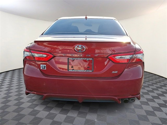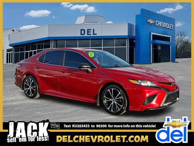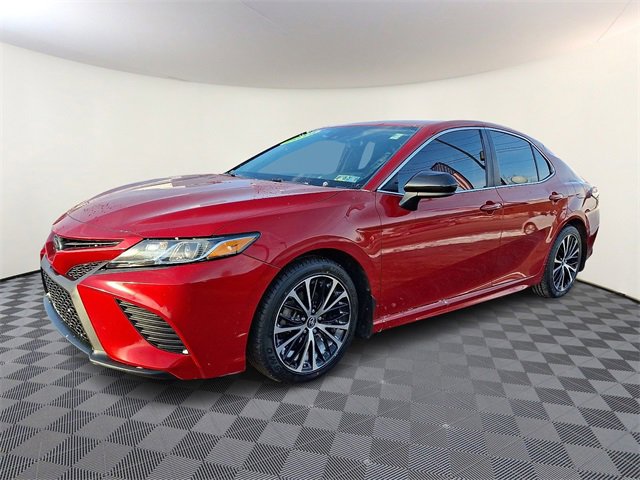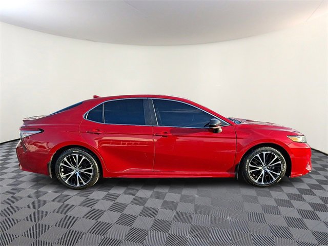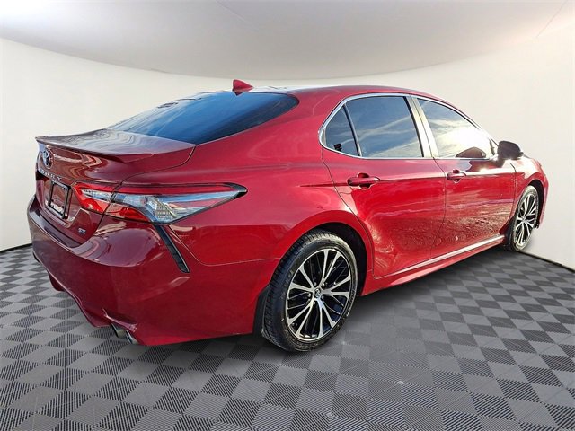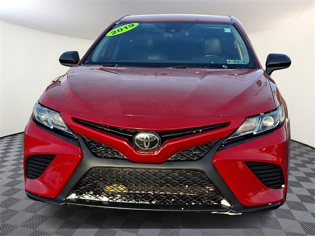 2019 Toyota Camry SE Red 4D Sedan FWD Black Cloth, 6 Speakers, Apple CarPlay, Emergency communication system: Safety Connect, Radio: Entune 3.0 Audio Plus w/App Suite, Wheels: 8.0J x 18 Black Machined-Finish Alloy, 4-Wheel Disc Brakes, ABS brakes, Air Conditioning, Alloy wheels, AM/FM radio, Auto High-beam Headlights, Automatic temperature control, Brake assist, Bumpers: body-color, Delay-off headlights, Driver door bin, Driver vanity mirror, Dual front impact airbags, Dual front side impact airbags, Electronic Stability Control, Exterior Parking Camera Rear, Fabric Seat Trim w/SofTex, Four wheel independent suspension, Front anti-roll bar, Front Bucket Seats, Front Bucket Sport Seats, Front Center Armrest, Front reading lights, Fully automatic headlights, Illuminated entry, Knee airbag, Leather Shift Knob, Low tire pressure warning, Occupant sensing airbag, Outside temperature display, Overhead airbag, Overhead console, Panic alarm, Passenger door bin, Passenger vanity mirror, Power door mirrors, Power driver seat, Power steering, Power windows, Radio data system, Radio: Entune 3.0 Audio w/App Suite, Rear anti-roll bar, Rear reading lights, Rear seat center armrest, Rear side impact airbag, Rear window defroster, Remote keyless entry, Security system, Speed control, Speed-sensing steering, Split folding rear seat, Spoiler, Sport steering wheel, Steering wheel mounted audio controls, Tachometer, Telescoping steering wheel, Tilt steering wheel, Traction control, Trip computer, Variably intermittent wipers, Black Cloth, 6 Speakers, Apple CarPlay, Emergency communication system: Safety Connect, Radio: Entune 3.0 Audio Plus w/App Suite, Wheels: 8.0J x 18 Black Machined-Finish Alloy. 2.5L I4 DOHC 16V