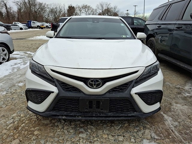 2023 Toyota Camry SE White 4D Sedan FWD Black Artificial Leather, 6 Speakers, 8.0J x 18 Alloy Wheels, AM/FM radio: SiriusXM, Apple CarPlay/Android Auto, 4-Wheel Disc Brakes, ABS brakes, Air Conditioning, Alloy wheels, Auto High-beam Headlights, Automatic temperature control, Brake assist, Bumpers: body-color, Delay-off headlights, Driver door bin, Driver vanity mirror, Dual front impact airbags, Dual front side impact airbags, Electronic Stability Control, Emergency communication system: Safety Connect (1-year trial), Exterior Parking Camera Rear, Four wheel independent suspension, Front anti-roll bar, Front Bucket Seats, Front Center Armrest, Front dual zone A/C, Front reading lights, Fully automatic headlights, Heated door mirrors, Illuminated entry, Knee airbag, Leather steering wheel, Low tire pressure warning, Occupant sensing airbag, Outside temperature display, Overhead airbag, Overhead console, Panic alarm, Passenger door bin, Passenger vanity mirror, Power door mirrors, Power driver seat, Power steering, Power windows, Radio data system, Radio: Audio, Rear anti-roll bar, Rear seat center armrest, Rear side impact airbag, Rear window defroster, Remote keyless entry, Security system, Speed control, Speed-sensing steering, Split folding rear seat, Spoiler, Sport SofTex Seat Trim w/Fabric Inserts, Steering wheel mounted audio controls, Tachometer, Telescoping steering wheel, Tilt steering wheel, Traction control, Trip computer, Turn signal indicator mirrors, Variably intermittent wipers, Black Artificial Leather, 6 Speakers, 8.0J x 18 Alloy Wheels, AM/FM radio: SiriusXM, Apple CarPlay/Android Auto. 2.5L I4 DOHC 16V