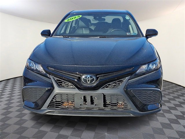 2023 Toyota Camry SE Midnight Black 4D Sedan FWD Black Artificial Leather, 6 Speakers, 8.0J x 18 Alloy Wheels, AM/FM radio: SiriusXM, Apple CarPlay/Android Auto, Leather steering wheel, Radio data system, Sport SofTex Seat Trim w/Fabric Inserts, 4-Wheel Disc Brakes, ABS brakes, Air Conditioning, Alloy wheels, Auto High-beam Headlights, Automatic temperature control, Brake assist, Bumpers: body-color, Delay-off headlights, Driver door bin, Driver vanity mirror, Dual front impact airbags, Dual front side impact airbags, Electronic Stability Control, Emergency communication system: Safety Connect (1-year trial), Exterior Parking Camera Rear, Four wheel independent suspension, Front anti-roll bar, Front Bucket Seats, Front Center Armrest, Front dual zone A/C, Front reading lights, Fully automatic headlights, Heated door mirrors, Illuminated entry, Knee airbag, Low tire pressure warning, Occupant sensing airbag, Outside temperature display, Overhead airbag, Overhead console, Panic alarm, Passenger door bin, Passenger vanity mirror, Power door mirrors, Power driver seat, Power steering, Power windows, Radio: Audio, Rear anti-roll bar, Rear seat center armrest, Rear side impact airbag, Rear window defroster, Remote keyless entry, Security system, Speed control, Speed-sensing steering, Split folding rear seat, Spoiler, Steering wheel mounted audio controls, Tachometer, Telescoping steering wheel, Tilt steering wheel, Traction control, Trip computer, Turn signal indicator mirrors, Variably intermittent wipers, Black Artificial Leather, 6 Speakers, 8.0J x 18 Alloy Wheels, AM/FM radio: SiriusXM, Apple CarPlay/Android Auto, Leather steering wheel, Radio data system, Sport SofTex Seat Trim w/Fabric Inserts. 2.5L I4 DOHC 16V