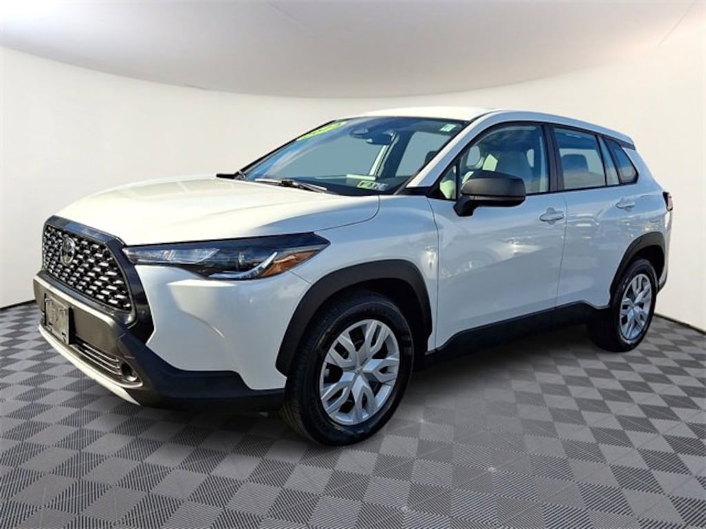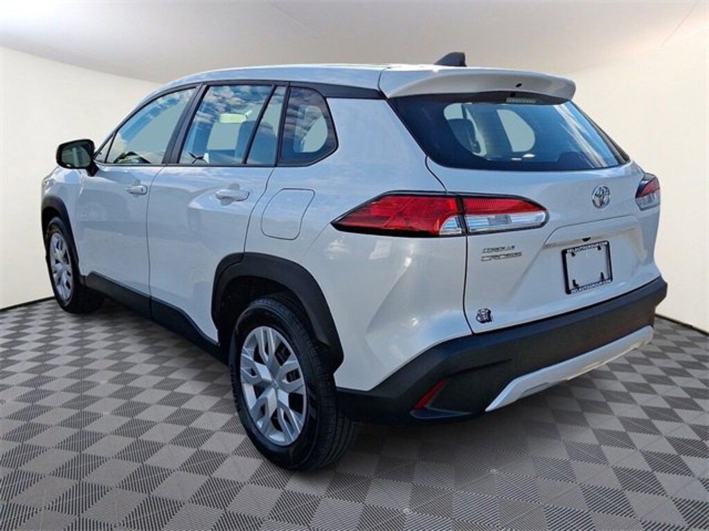 2023 Toyota Corolla Cross L White 4D Sport Utility FWD 6 Speakers, Emergency communication system: Safety Connect (10-year trial), Radio: 8 Toyota Multimedia, 4-Wheel Disc Brakes, 4.014 Axle Ratio, ABS brakes, Air Conditioning, AM/FM radio: SiriusXM, Auto High-beam Headlights, Brake assist, Bumpers: body-color, Delay-off headlights, Driver door bin, Driver vanity mirror, Dual front impact airbags, Dual front side impact airbags, Electronic Stability Control, Exterior Parking Camera Rear, Fabric Seat Trim, Front anti-roll bar, Front Bucket Seats, Front Center Armrest, Front reading lights, Front wheel independent suspension, Heated door mirrors, Illuminated entry, Knee airbag, Low tire pressure warning, Occupant sensing airbag, Outside temperature display, Overhead airbag, Panic alarm, Passenger door bin, Passenger vanity mirror, Power door mirrors, Power steering, Power windows, Radio data system, Rear anti-roll bar, Rear side impact airbag, Rear window defroster, Remote keyless entry, Speed control, Split folding rear seat, Spoiler, Steering wheel mounted audio controls, Tachometer, Telescoping steering wheel, Tilt steering wheel, Traction control, Trip computer, Wheels: 17 Steel w/Silver Wheel Covers, 6 Speakers, Emergency communication system: Safety Connect (10-year trial), Radio: 8 Toyota Multimedia. 2.0L I4 PDI DOHC 16V LEV3-SULEV30 169hp